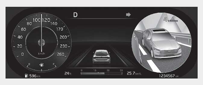 후측방 모니터는 차량에 장착된 카메라를 이용하며, 운전자가 방향지시등을 켜는 쪽의 후측방 영상을 클러스터에 표시하여 안전한 운전을 도와주는 주행 안전 기능입니다.