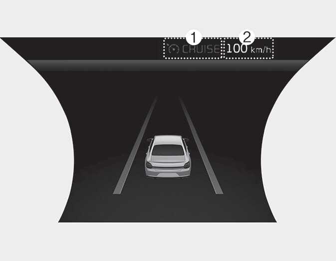 작동 상태 ①: 전방 차량 유무 및 설정된 차간거리 단계 ②: 설정속도 ③: 전방 차량 유무 및 목표 차간거리
