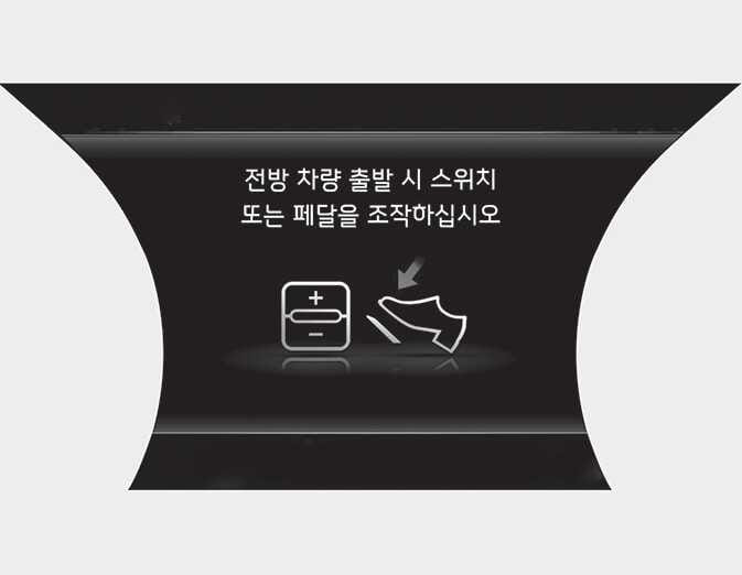정차 후 약 30초가 지나면 클러스터에 위 그림과 같이 안내문이 표시됩니다. 다시 출발하려면 가속 페달을 밟거나, +/- 스위치를 올리거나 내리거나,
