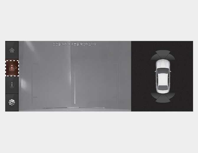 )을 터치하면 차량을 위에서 내려다 보는 영상이 화면에 표시되고, 주차할 때 후방 차량과의 거리를 보여주는 기능입니다.