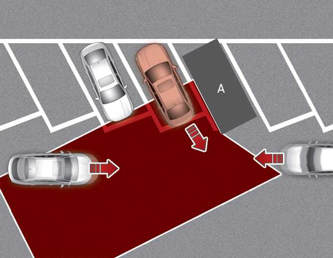 주변에 차량이나 구조물이 있으면 후측방에서 접근하는 차량을 인식하지 못해 후방 교차 충돌방지 보조가 경고하지 않거나 제동을 도와주지 않을 수 있습니다.