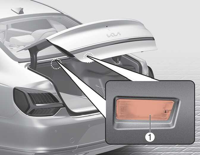 화물칸 램프(LED 타입)의 전구 교체 ORJ071042 LED 타입의 화물칸 램프(1)가 켜지지 않을 경우에는 가까운 자사 직영 서비스센터 또는 서비스협력사에 점검을 의뢰하십시오.