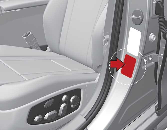 본 차량의 권장 타이어 공기압 정보는 운전석옆 센터 필러에 부착된 라벨 안에 표기되어 있습니다.