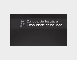 Para desativar a função de controlo da tração e a função de controlo dos travões do ESC, prima o botão ESC OFF (ESC OFF ) durante mais de 3 segundos. O indicador luminoso ESC OFF (ESC OFF ) ilumina-se e é emitido o aviso sonoro ESC OFF. Nesta altura, a função de controlo de estabilidade do veículo deixa de funcionar.
