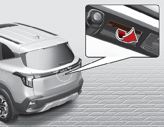 테일게이트가 닫힌 상태에서 핸들 스위치를 누르면 경고음과 함께 테일게이트가 열립니다. 차량이 잠긴 상태에서 테일게이트를 열려면 스마트키를 휴대하고 버튼을 누르십시오.