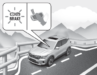 브레이크 경고등이 켜지면 페달이 딱딱해져 제동이 힘들 수 있습니다. 이 경우에는 평상시보다 강하게 밟아 정지시켜야 합니다.