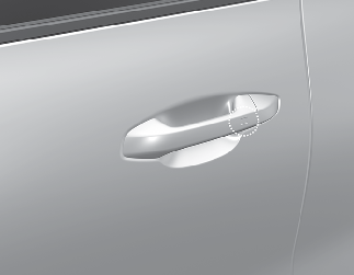 스마트 키를 휴대하고 앞좌석 도어의 바깥 손잡이에 있는 도어 잠금/잠금 해제 버튼(버튼 타입)을 누르거나 앞좌석 도어의 바깥 손잡이에 있는 음각 부분으로 되어 있는 도어 잠금 센서부(터치센서 타입)를 터치하십시오.