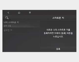 인포테인먼트 시스템에서 ‘설정→차량→디지털키→스마트폰 키→나의 스마트폰 키’를 선택해 등록 화면으로 이동하십시오.