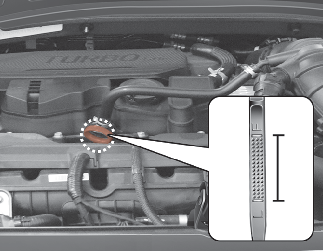 보충 후에는 오일양이 규정량에 속하는지 레벨 게이지로 다시 확인하십시오.