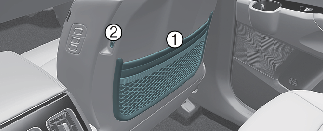 Esiistme seljatoes on topelttasku (1) raamatute või atlaste hoidmiseks ning tagaistmel sõitjate jaoks USB-laadija (2) (kui kuulub varustusse).