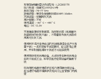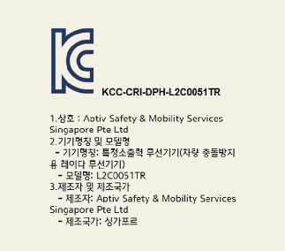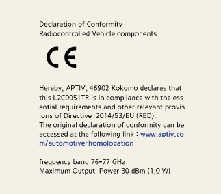 ส่วนประกอบความถี่วิทยุ (เรดาร์มุมด้านหลัง) เป็นไปตาม: