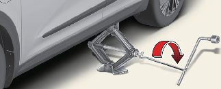 สอดคันหมุนเลื่อนแม่แรงเข้าไปในแม่แรง แล้วหมุนตามเข็มนาฬิกา ยกรถขึ้นจนกว่ายางจะพ้นจากพื้น โดยให้ยางห่างจากพื้นประมาณ 30 มม. (1.2 นิ้ว) ก่อนที่จะถอดน็อตล้อ ต้องตรวจสอบให้แน่ใจว่ารถมีความมั่นคงและเคลื่อนที่หรือลื่นไถลไม่ได้