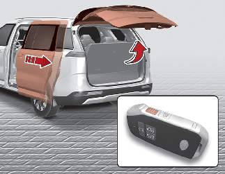 Press the unlock button on the smart key for approximately 3 seconds to open the sliding door and the tailgate.