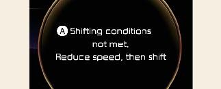 When driving speed is too fast to shift the gear. Decrease the vehicle speed or slow down before shifting the gear.