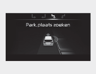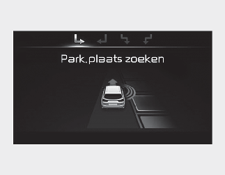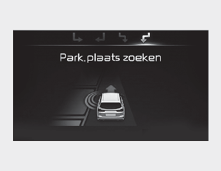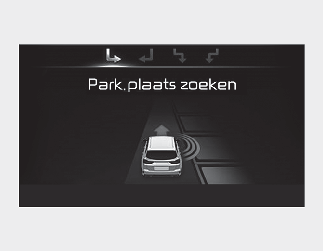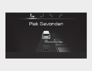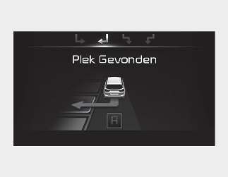 Als het systeem al een parkeerplaats had gedetecteerd voordat de parkeerhulp werd geactiveerd, verschijnt de melding "Parking search" (Parkeerplaats zoeken) of "Space found" (Parkeerplaats gevonden).
