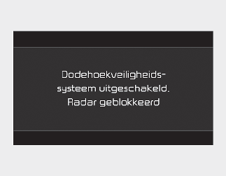 Als het deel van de achterbumper waar de achterste hoekradar of de sensor zich bevindt, bedekt is met vuil, zoals sneeuw of regen, of als een aanhanger of drager wordt geplaatst, kan dit de detectieprestaties verminderen en Safe Exit Warning tijdelijk beperken of uitschakelen. Als dit gebeurt, verschijnt de waarschuwingsmelding 'Blind-Spot Safety system disabled. De waarschuwingsmelding Radar blocked zal verschijnen op het instrumentenpaneel. Safe Exit Warning (waarschuwing bij veilig uitstappen) werkt naar behoren als dit vuil of de aanhanger, etc. is verwijderd en de motor daarna opnieuw wordt gestart.