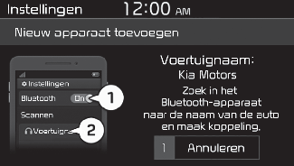 Schakel Bluetooth in op het Bluetooth-apparaat dat u wilt verbinden, zoek naar het systeem van uw voertuig en selecteer dit.