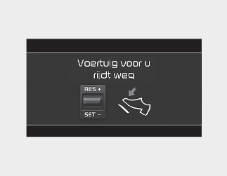 Als de bestuurder een bepaalde tijd lang niets doet nadat het voorliggende voertuig wegrijdt, verschijnt de melding op het instrumentenpaneel.