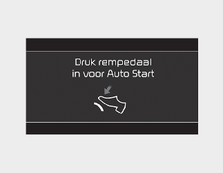 • De melding "press clutch pedal for Auto Start" (trap koppelingspedaal in voor Auto Start) verschijnt op het LCD-scherm.