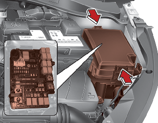 Plaats het deksel op de juiste manier tot een klikkend geluid hoorbaar is, nadat de zekeringkast in de motorruimte is gecontroleerd.