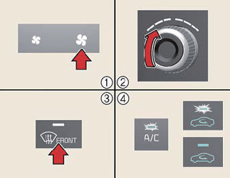 Die Frischluftposition wird automatisch gewählt und die Klimaanlage wird entsprechend der erfassten Umgebungstemperatur eingeschaltet.
