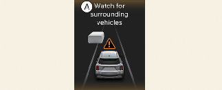 In der folgenden Situation erscheint die Warnmeldung „Auf benachbarte Fahrzeuge achten“ auf dem Kombiinstrument und ein Warnton macht den Fahrer auf die Verkehrsverhältnisse vor ihm aufmerksam.