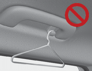 Не размещайте на вешалке ничего (в том числе плечиков или твердых предметов), кроме одежды. Также не размещайте в карманах одежды тяжелые, острые или бьющиеся предметы. В случае аварии или наполнения шторки безопасности воздухом эти предметы могут привести к повреждению автомобиля или травмам.