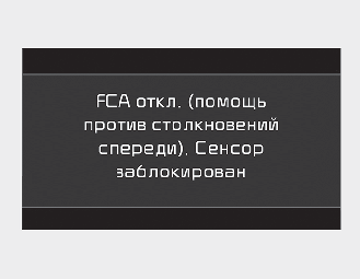 В этом случае отображается сообщение «Forward Collision-Avoidance Assist (FCA) system disabled. Radar blocked» (Система предотвращения лобового столкновения отключена. Радар заблокирован). Удалите загрязнение, чтобы система FCA могла работать нормально.