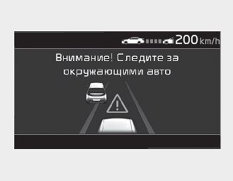 В случае, если автомобиль не в состоянии удерживать выбранную дистанцию до движущегося впереди автомобиля, отобразится предупреждающее сообщение и прозвучит звуковой сигнал.