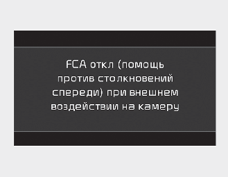 Когда камера закрыта грязью, снегом или мусором, система FCA может не распознавать другие автомобили. В таком случае появится предупреждающее сообщение, чтобы оповестить водителя.