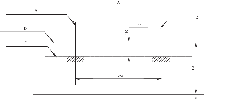 B: Вертикальная линия центра лампы левой противотуманной фары