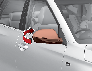 In case it is an electric type outside rearview mirror, don't fold it by hand. It could cause motor failure.
