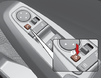 The outside rearview mirror can be folded or unfolded by pressing the switch when the ignition switch or ENGINE START/STOP button is in the ON position as below.