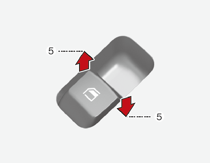 To open or close a window, press down or pull up the front portion of the corresponding switch to the first detent position (5).