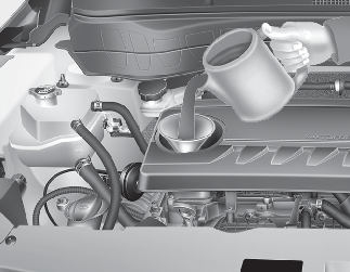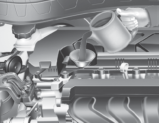 Use a funnel to help prevent oil from being spilled on engine components. Use only the specified engine oil. (Refer to More Details.)