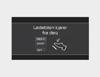 Hvis føreren ikke foretar seg noe i løpet av et bestemt tidsrom etter at bilen foran har kjørt videre, vises meldingen på instrumentpanelet.