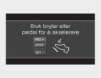 Trykk på gasspedalen og velg riktig hastighetsinnstilling. Sjekk for å være sikker på at veiforholdene tillater sikker bruk av smart hastighetskontroll.