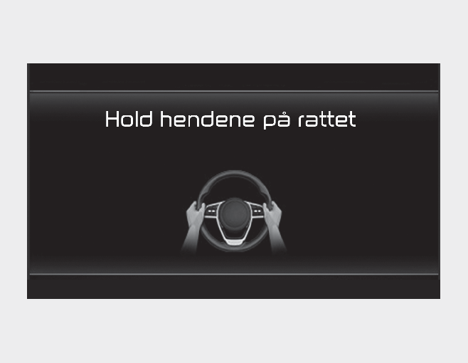Hvis føreren tar hendene av rattet i flere sekunder, vil varselmeldingen ‘Keep hands on steering wheel’ (Hendene på rattet) vises på instrumentpanelet og det vil høres et lydvarsel i trinn.