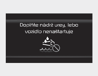 Keď systém stimulovania dosiahne konečný stav a zablokuje opätovné naštartovanie vozidla, bude deaktivovaný iba v prípade, že sa nádrž na karbamidový roztok doplní alebo sa odstránia poruchy. Ak sa vozidlo nedá opätovne naštartovať s hlásením „Refill Urea tank or vehicle will not start“ (Doplňte karbamid do nádrže, ináč sa vozidlo nenaštartuje), doplňte dostatočné množstvo karbamidového roztoku, počkajte niekoľko minút a skúste znova naštartovať vozidlo. Ak nie je možné naštartovanie vozidla bez ohľadu na úroveň karbamidového roztoku, nechajte vozidlo skontrolovať v profesionálnej dielni. Spoločnosť Kia odporúča, aby ste kontaktovali autorizovaného predajcu Kia/servisného partnera.