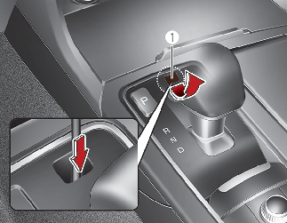 Remove the cap-cover (1) and insert a tool (e.g. flathead screwdriver) into the access hole and press down on the tool while depressing the brake pedal. Then, the gear will change to the N (Neutral) position. It should be pressed within 3 minutes after turning OFF the engine.