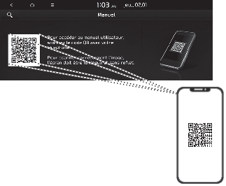 Scanner le code QR : Appuyez sur [SETUP] > [Généraux] > [Informations système] > [Manuel en ligne]. Scannez le code QR, puis tapez sur la notification pour aller sur la page Web.