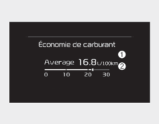 Ce mode affiche l'économie instantanée de carburant pendant les dernières secondes lorsque la vitesse du véhicule est supérieure à 8 km/h (5 mi/h).