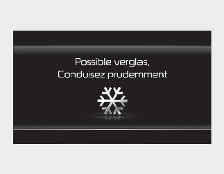 Si l'avertissement de route verglacée s’affiche pendant que vous conduisez, vous devez conduire plus attentivement et prudemment en ne roulant pas trop vite, en évitant les accélérations brusques, les coups de frein ou les virages brusques, etc.