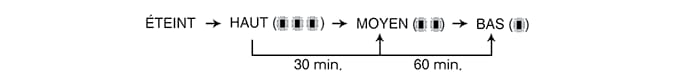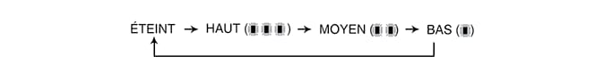 A chaque pression du bouton, le réglage de la température du siège change comme suit :