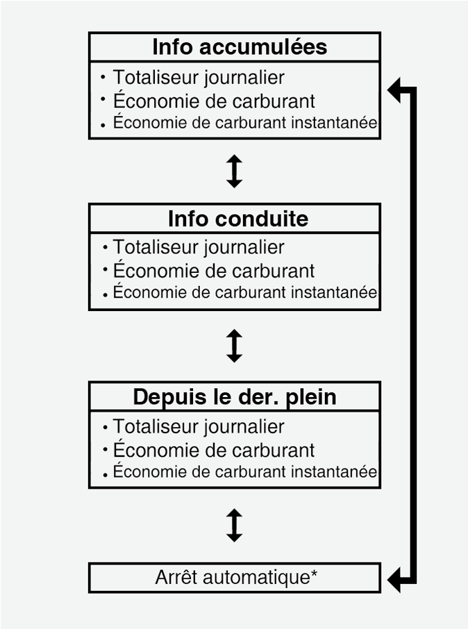 L'économie de carburant est calculée après que le véhicule a parcouru plus de 300 mètres (0,2 miles).