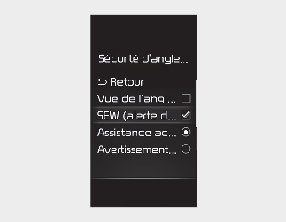 Si « Safety Exit warning » (Avertissement de sortie sécurisée) est désélectionné, la fonction ne peut pas vous assister.