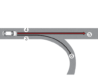 Le temps de décélération du véhicule peut varier en fonction de la vitesse du véhicule et du degré de la courbe sur la route. Plus la vitesse est élevée, pour la décélération est rapide.