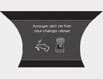 Le message d'avertissement s'affiche sur l'écran LCD lorsque la pédale de frein n'est pas enfoncée pendant le changement de rapport.
