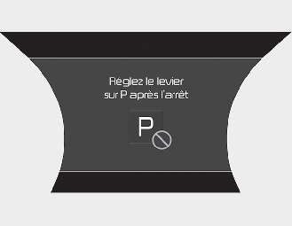 Ce message d'avertissement s'affiche sur l'écran LCD lorsque la boîte de vitesses ou le levier sélecteur ne fonctionne pas correctement en position de stationnement (P). Dans ce cas, faire immédiatement vérifier le système par un atelier professionnel. Kia recommande de consulter un concessionnaire/réparateur agréé Kia.
