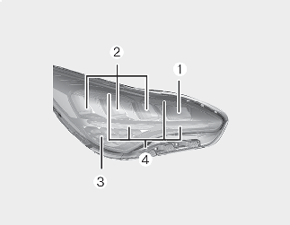 Si les feux de route (1), les feux de croisement (2), les feux de direction avant (3), ou les feux de position (4) ne fonctionnent pas, faites vérifier votre véhicule par un atelier professionnel.